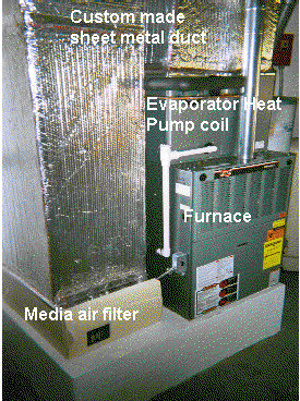 indoor furnace for air delivery and the evaporator coil and outdoor